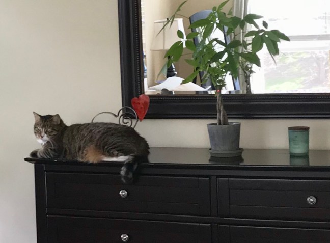 Next, I’m unbelievably comfortable for a variety of reasons. The most striking is in the attire I can wear. When I dress after waking up, I put in comfy workout clothes so I can go for a lunch run later in the day. Also my desk, chair and surrounding workspace at home is completely suited to my height, likings and taste. I can control the temperature of the room. Throughout the day my cats and dog come to visit, hang around and sleep on or near me. Their presence reminds me I’m home if I briefly get swept away in workplace politics. Not to mention that looking at them and petting them just seems to soothe my soul.